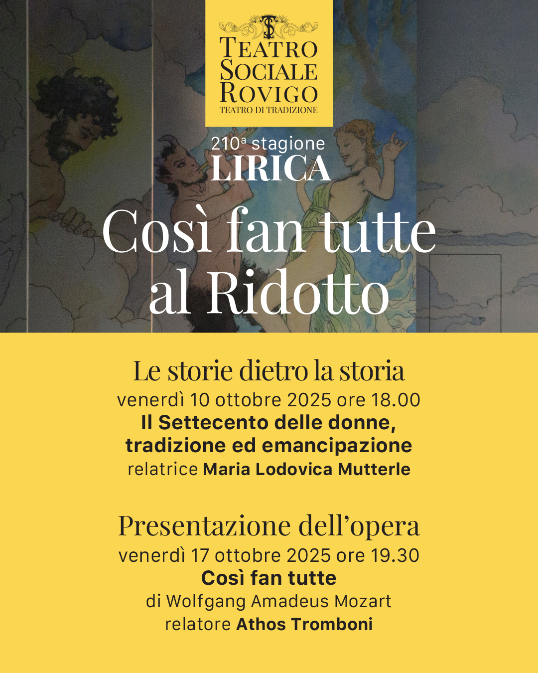 Debutta a Rovigo Così fan tutte di Wolfgang Amadeus Mozart su libretto di Lorenzo Da Ponte, assente dalla città da venticinque anni