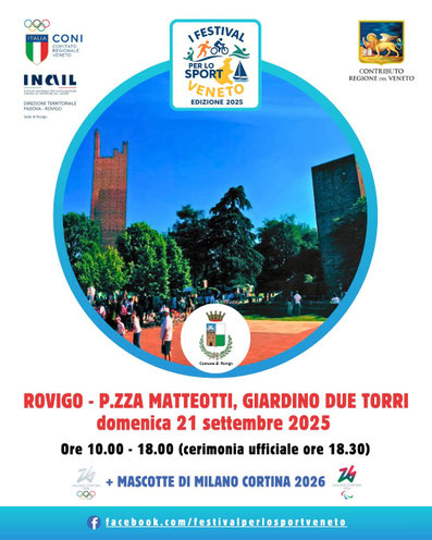 ROVIGO • Dopo l’eccezionale esperienza del 2024, che ha visto il Veneto protagonista come Regione Europea dello Sport, il CONI Veneto rilancia con rinnovato entusiasmo i Festival dello Sport Veneto edizione 2025, un progetto che si conferma nel tempo e si evolve nei contenuti.