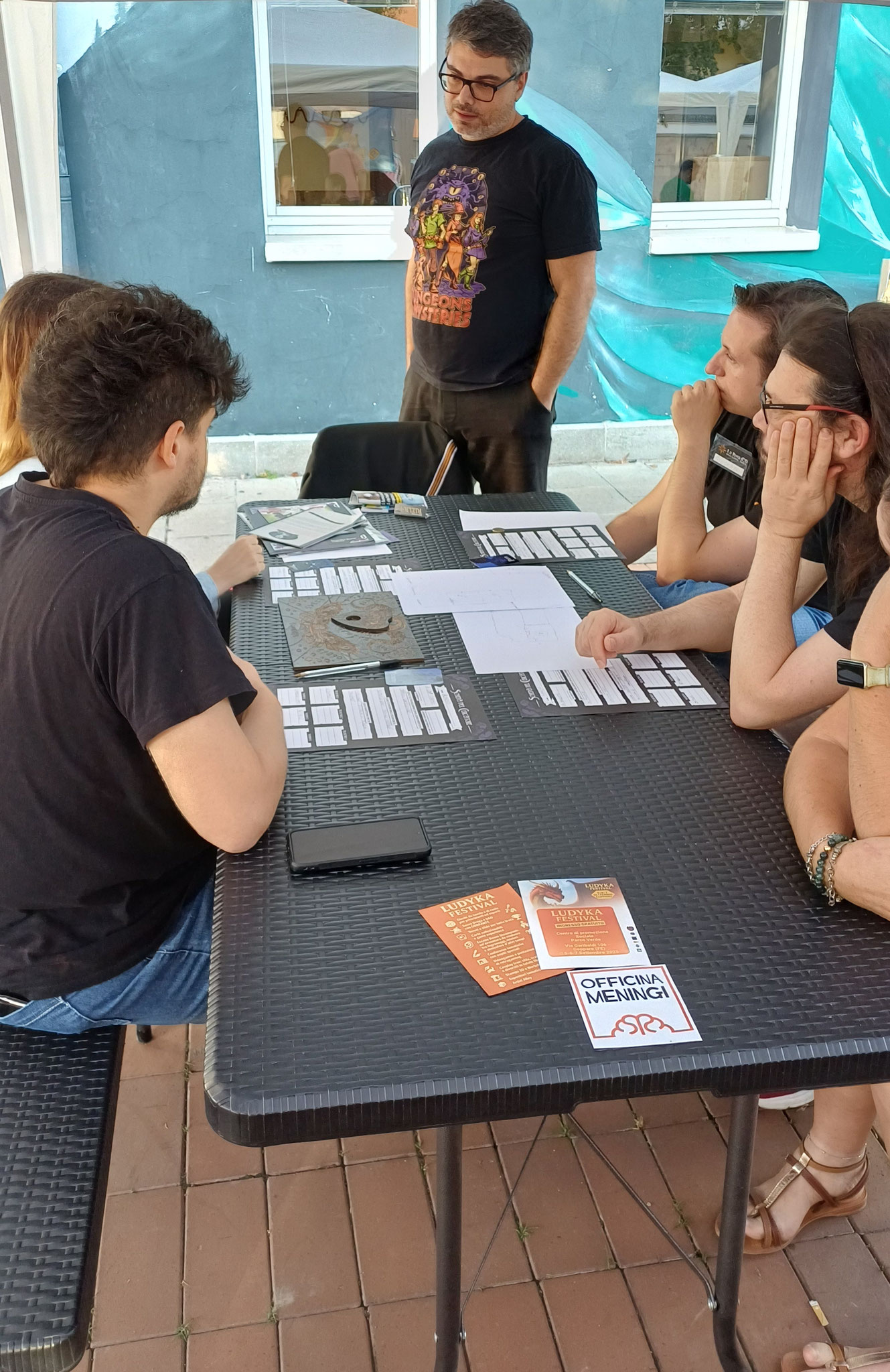 Abbiamo avuto il piacere di ospitare Officina Meningi, pluripremiata agenzia creativa e casa editrice, con la presenza degli autori Atropo Kelevra e Valentino Sergi. Hanno portato la loro visione creativa a Rovigo facendo giocare due loro titoli, Totem e Last Sabbath, che hanno riscosso molto successo, e ci hanno fatto conoscere il nuovo Guardie e Ladri, gioco di ruolo realizzato con l’intento di sensibilizzare al problema della ludopatia in maniera avventurosa.