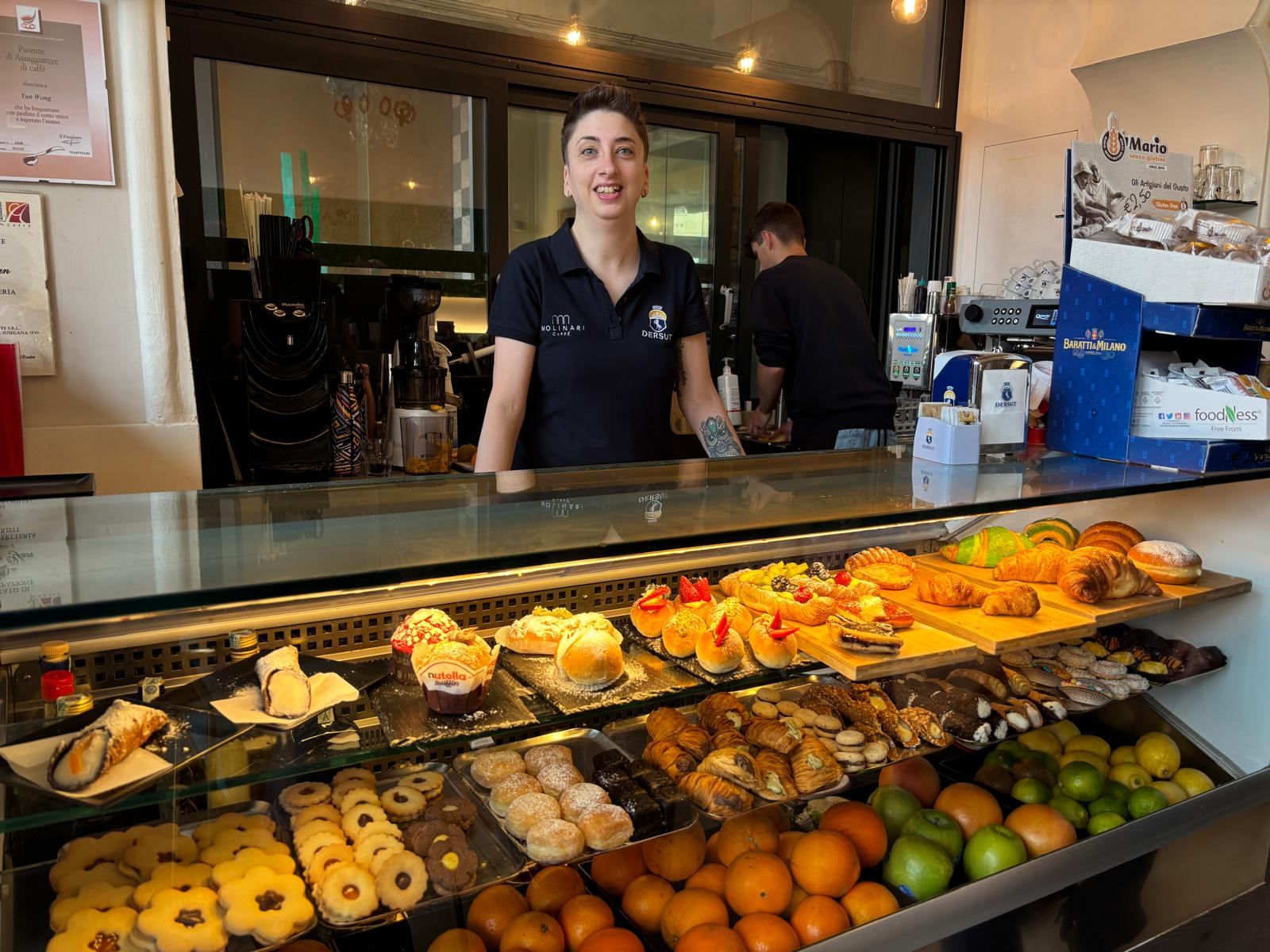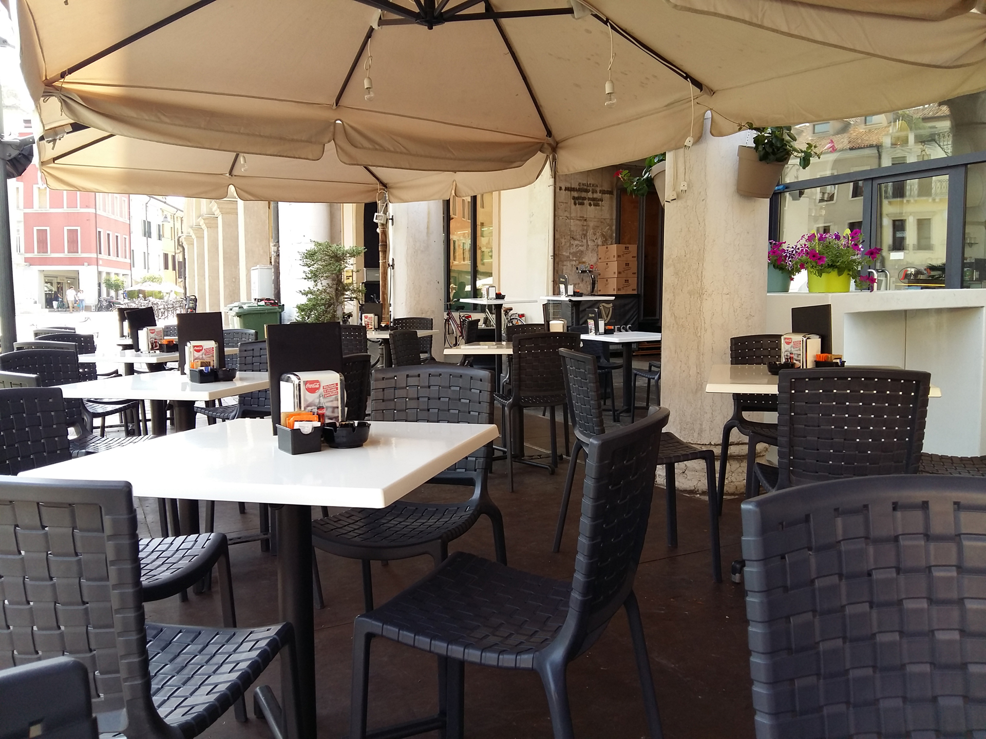 Location speciale per la colazione e le pause lavorative, gode di una privilegiata posizione sotto portici e di un plateatico con vista su piazza.